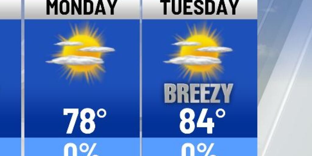 [ad_1] A period of dry warm weather begins today. Highs return to the 80s Tuesday. -- Rich Segal [ad_2] Source link